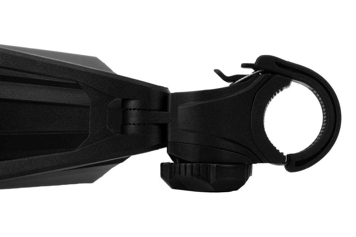 Schutzblech hinten im Enduro-Style für 27.5" Mountainbikes, werkzeuglose Montage, sekundenschnell montier- und demontierbar mittels cleveren A-TOP Drehverschluss, Gummierungen sorgen für verdrehsicheren Halt, optimale Einstellbarkeit durch zweigelenkigen Arm, matt-glänzendes Oberflächenfinish
