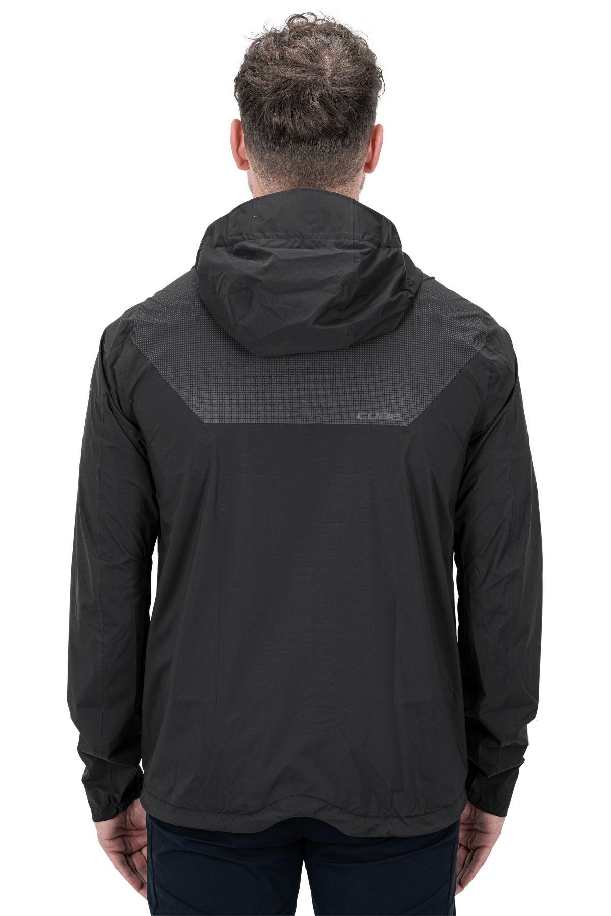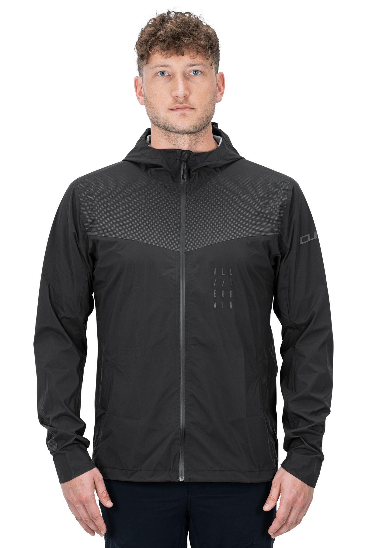 dauerhaft wasserabweisendes 2,5-Lagen-Funktionsmaterial, durchgehender wasserabweisender Frontreißverschluss, getapte Nähte, Saum verstellbar durch integrierten Kordelzug, Aussparung am Saum um Ballon-Effekt bei eng gezogenem Saum zu vermeiden, verstellbare Kapuze mit zusätzlichem Schirm, Kapuze eignet sich zum Tragen unter dem Helm, Seitentaschen mit verdecktem Reißverschluss, Perforation zur Ventilation unter den Armen, elastischer Ärmelsaum, reflektierende Elemente