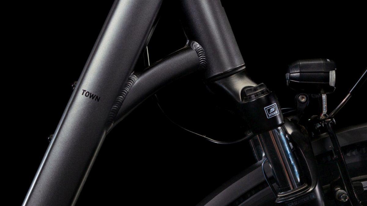 Das Herzstück des Town ist sein hochwertiger, leichter Aluminiumrahmen mit unserer Efficient Comfort Geometry und damit einem unglaublich agilen und sicheren Handling. Er lässt sich spielend leicht durch den Stadtverkehr manövrieren und sieht als Tiefeinsteiger nicht nur elegant aus, sondern erleichtert das Auf- und Absteigen maßgeblich. Das Town kommt ab Werk mit unserem überaus formschön integrierten Gepäckträger auf die Straße. Außerdem verlaufen die Kabelzüge im Unterrohr, was für einen cleanen Look und dafür sorgt, dass die Schaltung ihre Arbeit länger sauber machen kann. Selbstverständlich haben wir an genügend Platz – und an Montagepunkte – zum Anbringen eines Flaschenhalters gedacht. Da kann die Wochenendtour ruhig mal länger dauern. Aufsitzen und genießen!