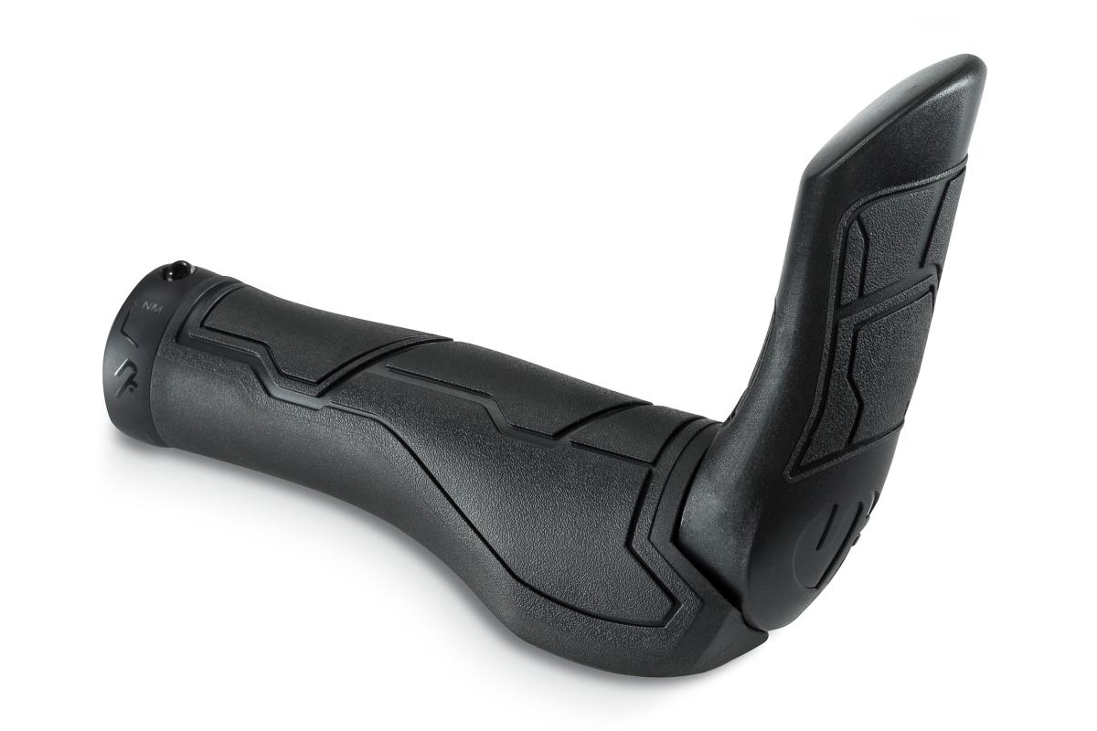 Natural Fit Philosophie angewandt auf Flexibilität und wechselnde Untergründe, Triple-Density Material, Auflage mit Shock X Material absorbiert hochfrequente Vibrationen, Innenklemmung, in zwei Größen erhältlich, hochwertige Cold Forged Aluminiumklemme, ergonomisch optimierte Dual-Density Barends medium, integrierte Klemmung
