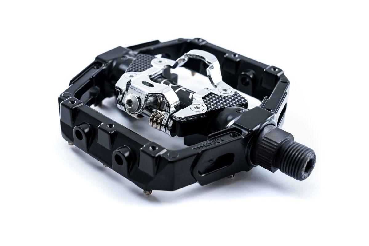 Das Flat-Pedal mit Klick System ist SPD kompatibel und wird auf einer CrMo-Achse verbaut. Die Anti-Rutsch-Pins sind austauschbar und bieten besten Halt am Fahrrad.