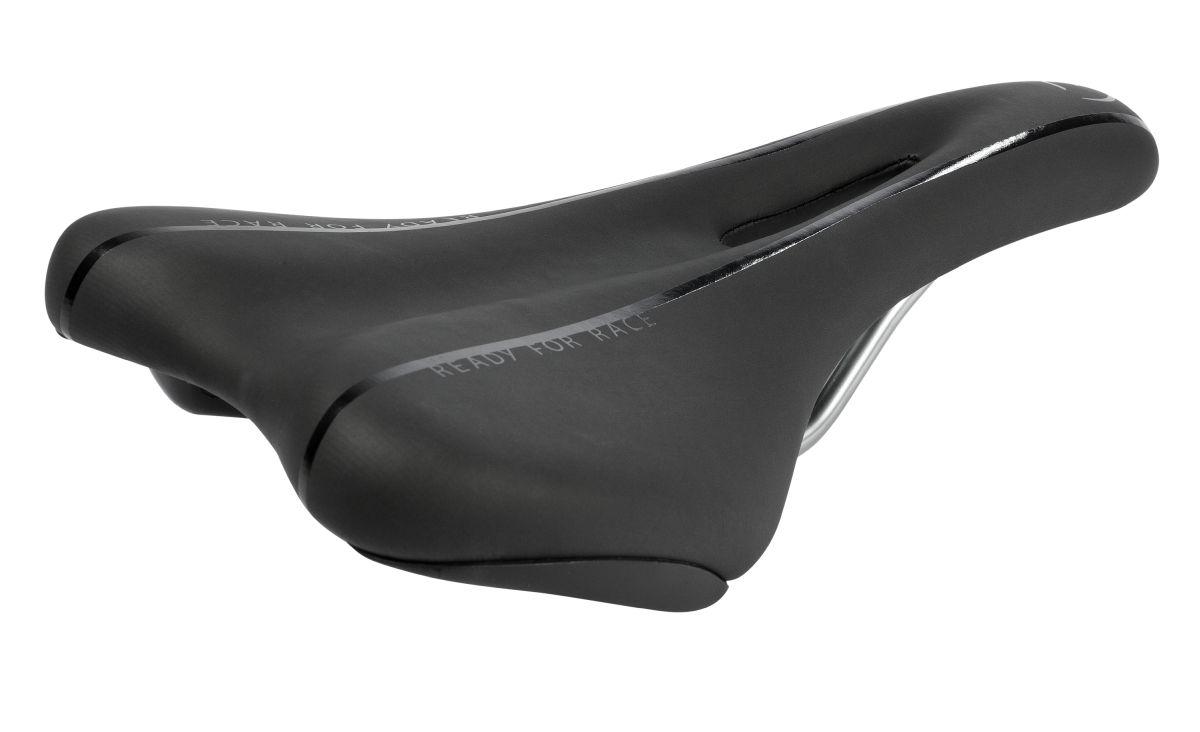Dual-Density Technologie für die Entlastung an den Sitzknochen, ergonomische Aussparung für empfindliche Nervenbereiche, durchgängiger Cut-Out für den Genitalbereich,