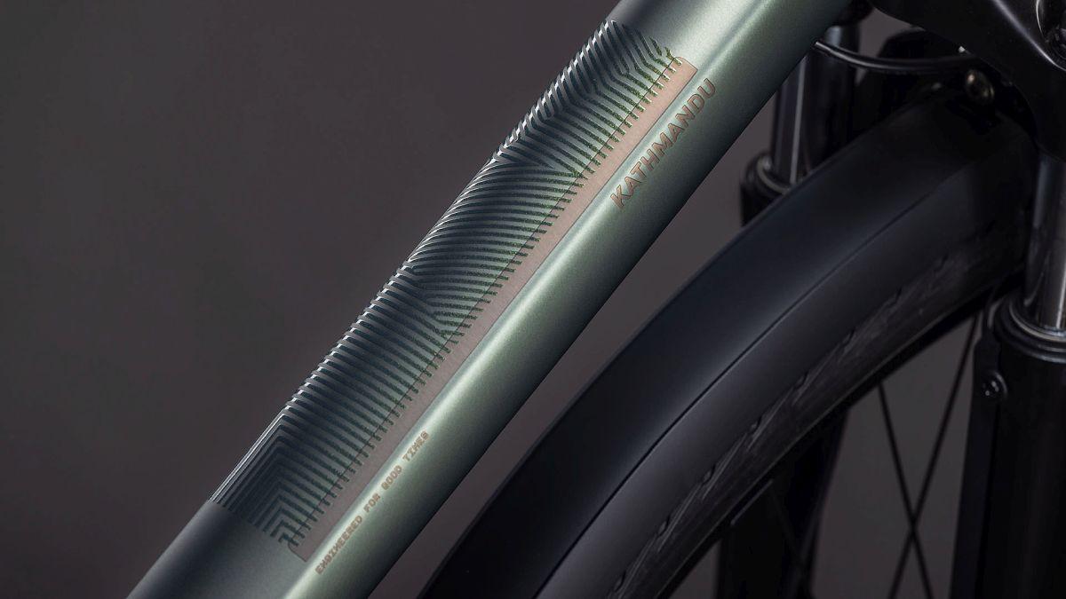 Wir hier bei CUBE sind unter anderem für unsere extreme Liebe zum Detail bekannt. Deshalb haben wir das Kathmandu auch mit dem integrierten Gepäckträger IC 3.0 ausgestattet, der nahtlos und formschön in unsere ACID Schutzbleche übergeht. Dazu gibt's am Hinterrad Aufnahmen für eine Flat Mount Scheibenbremse und einen Seitenständer. Seine cleane, aufgeräumte Optik verdankt das Chassis den im Smooth Welding Verfahren gestalteten Rohrverbindungen und im Inneren verlaufenden Zügen. So viel zum Aussehen. In Sachen Funktion haben wir den Hinterbau mit einer Steckachse versehen und ein konisches Steuerrohr für optimierte Stabilität und Lenkpräzision (selbst bei voller Beladung) verbaut. Also alles da, was es auf Tour braucht – den Rest machst du!