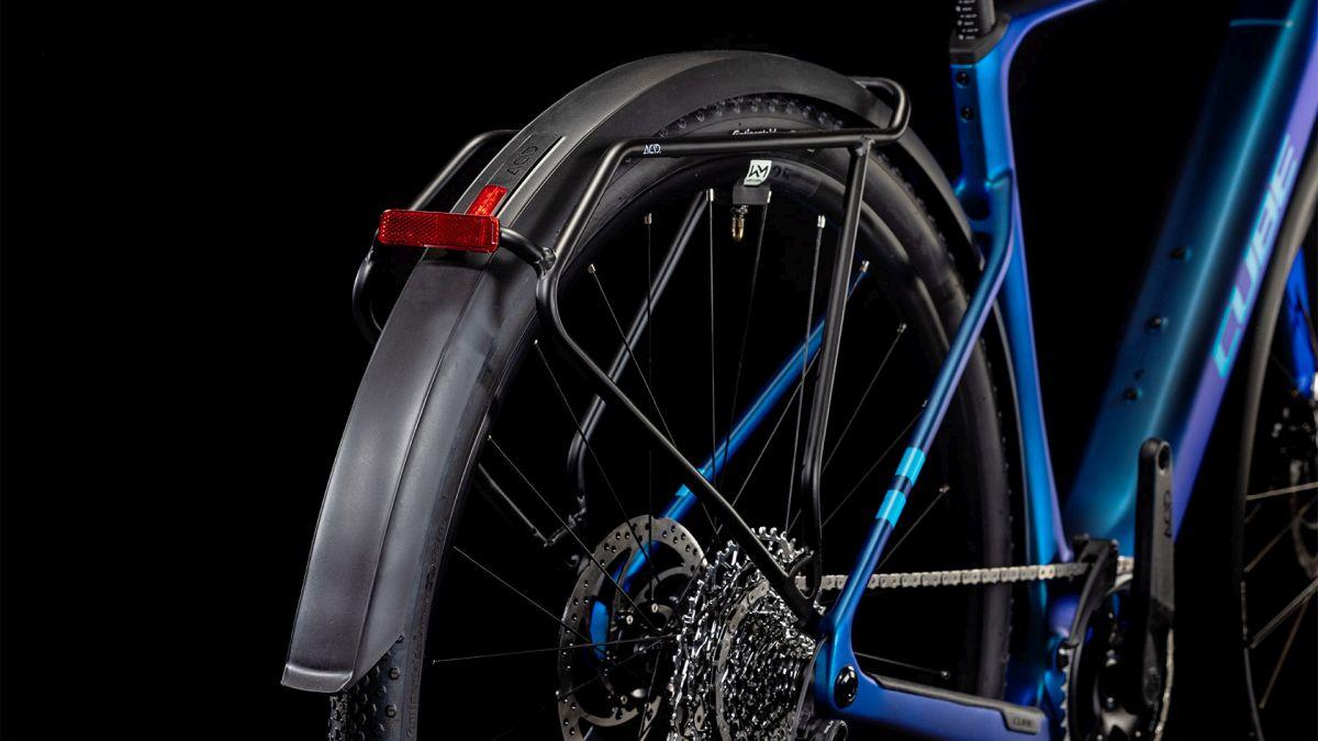 Der Carbonrahmen des Nulane Hybrid C:62 orientiert sich stark an dem unserer schnellen, leichten und robusten Gravel-Bikes, seine elegante Linienführung und cleane Optik lassen auf hohe Qualität schließen. Dank genügend Reifenfreiheit können bis zu 50 mm breite Reifen – sogar mit Schutzblechen – montiert werden. Dazu haben wir einen Seitenständer und einen stabilen Gepäckträger am Heck integriert, der sich vor allem auf dem Weg ins Office und bei längeren Touren bezahlt macht. Außerdem Montagepunkte an der Gabel zum Nachrüsten eines Lowrider Gepäckträgers. Ein Beleuchtungssystem sorgt für die nötige Sicherheit und Sichtbarkeit. Das Cockpit für den Bosch Antrieb fügt sich formschön ins Oberrohr ein, dazu gibt's eine Mini Remote am Lenker. Wer sich noch mehr Kapazität und Reichweite wünscht, bestückt den Rahmen mit einem zusätzlichen 250 Wh PowerMore Akku. Was noch? Eine versteckte Sattelklemme, eine Direct Mount Kettenführung, Aufnahmen für einen Flat Mount Seitenständer, ein Boost Hinterbau und die Möglichkeit zur Integration eines UDH. Fazit: Mit diesem effizienten Alleskönner hast du überall und immer die Nase vorn!