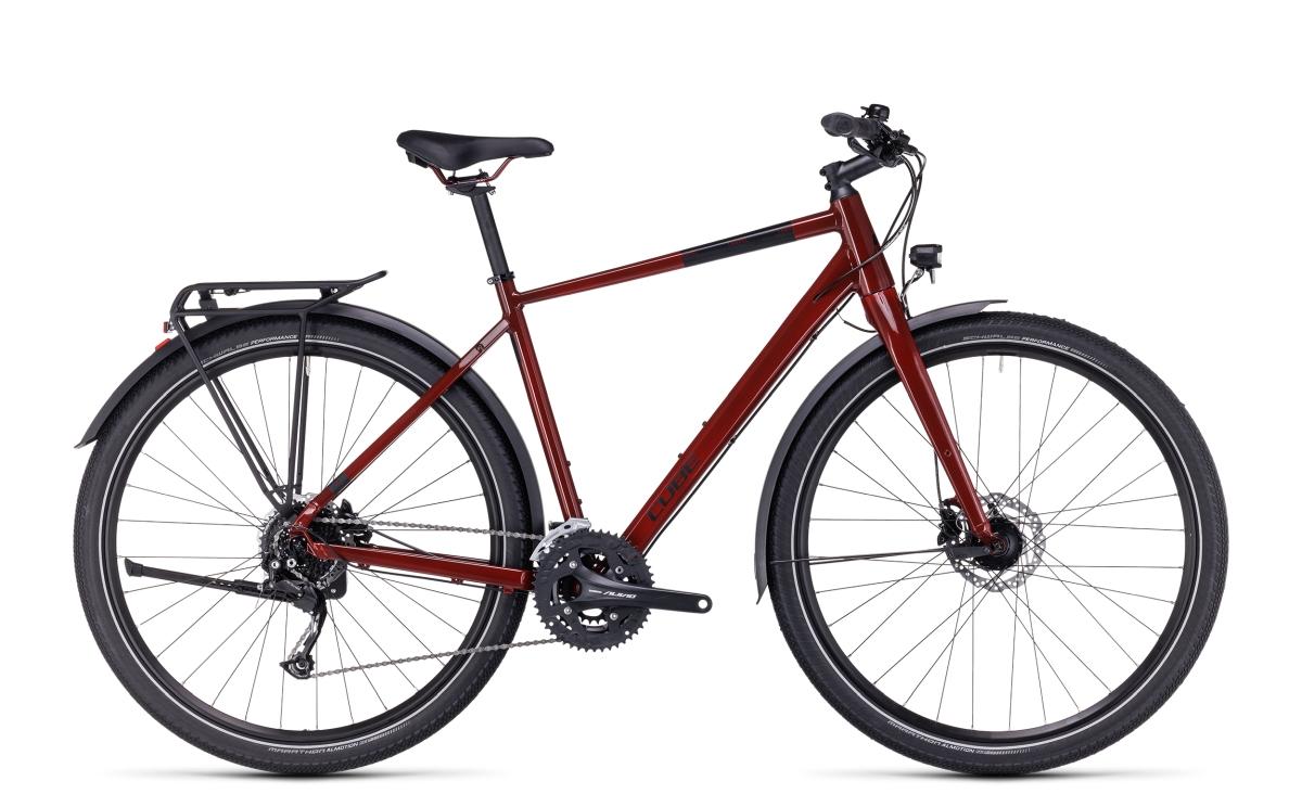 Wer sich für ein CUBE Travel entscheidet, bucht das Abenteuer gleich mit. Warum? Weil dieses Bike alles mitbringt, was dich auf deiner Tour optimal unterstützt: semi-integrierter Gepäckträger, Schutzbleche, Seitenständer und eine per Dynamo am Vorderrad betriebene Lichtanlage. Und mit der einfach bedienbaren, breit gefächerten Shimano Alivio 3x9-Gang Schaltung wechselst du unterwegs spielend leicht von Gang zu Gang und meisterst jede Route und jeden Anstieg souverän. Wetterunabhängig sicheres Bremsen ist das Spezialgebiet der leistungsstarken hydraulischen Scheibenbremsen – ebenfalls von Shimano. Stellt sich sogleich die Frage, wo der nächste Trip hingeht?