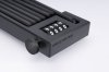 Zahlenschloss mit vier einstellbaren Zahlenrädern, Kunststoffoberfläche schützt den Rahmen vor Kratzern, speziell gehärteter Verschlussbolzen, rostfreier Hochleistungsstahl, geprüft auf mechanische Festigkeit, Eis-Spray getestet, Sägeschutz, abnutzungsresistent, schadstoffarm zertifiziert, Halterung mit zusätzlicher Klettverschlussanbringung und zwei M5 SchraubenMaterial: Stahl, Kunststoff