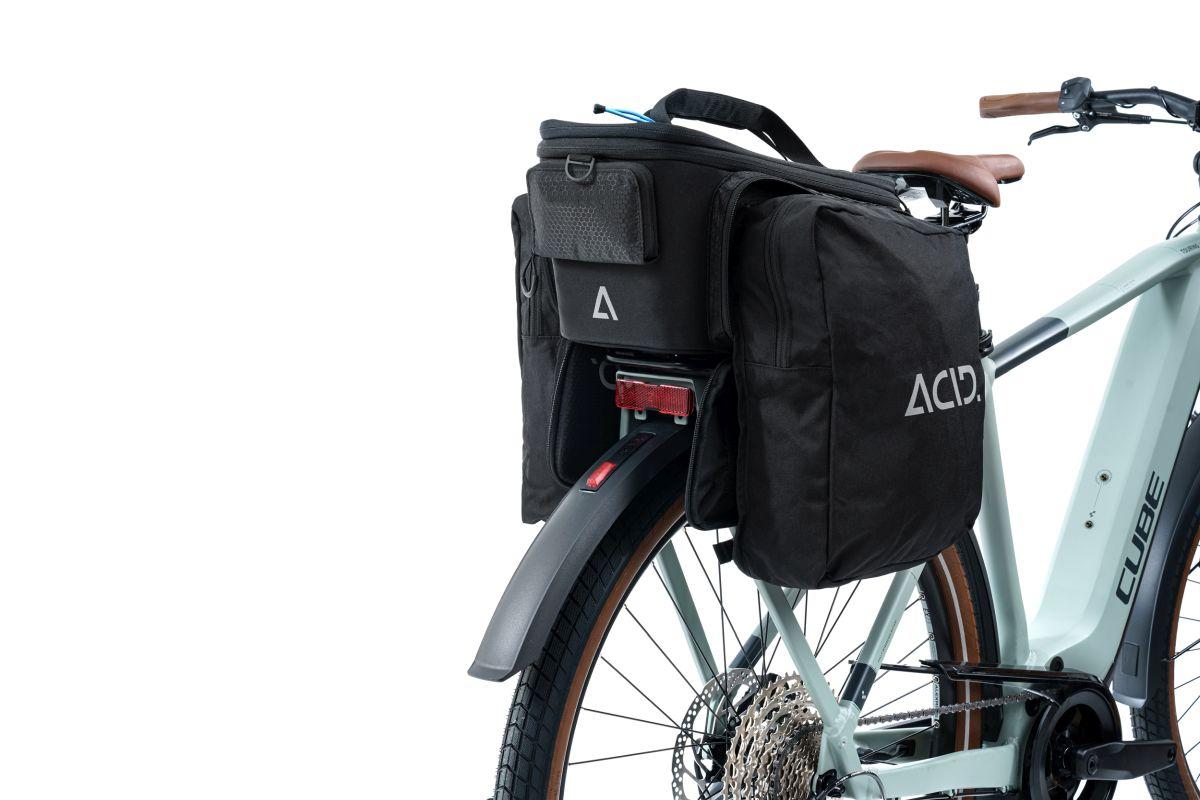 kompatibel mit allen RILink Gepäckträgern von ACID und CUBE, ACID RILink, ausklappbare Seitentaschen, vergrößerbares Hauptfach, Befestigungsmöglichkeit durch Gummiband, Schultertragegurt, reflektierende Elemente, Flaschenhalter, Regenhülle