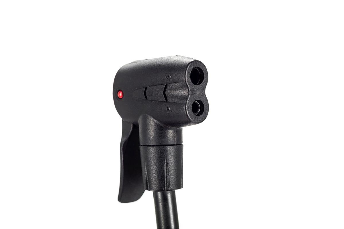 Presta- und Schrader-Ventilkopf mit Schnellverschlusshebel, Kunststofffuß mit integriertem Manomenter, 160 psi max. / 11 bar max.
