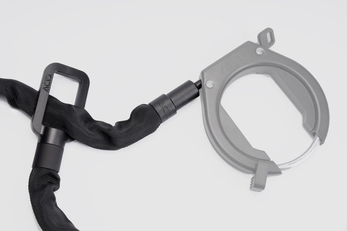 Du möchtest dein Rad mit Rahmenschloss nicht nur abschließen, sondern für mehr Sicherheit auch irgendwo anschließen? Die Lösung: die ACID Einsteckkette für das ACID Rahmenschloss LATCH 6078. So kannst du dein Bike zusätzlich an einem festen Gegenstand sichern und brauchst nur einen Schlüssel. Die Einsteckkette ist geräuscharm, extrem robust und abnutzungsresistent. Das weiche Kunststoffcover schützt den Rahmen vor Kratzern. Die ACID PRO 100 ist 100 cm lang, es gibt auch die PRO 150 mit 150 cm Länge.