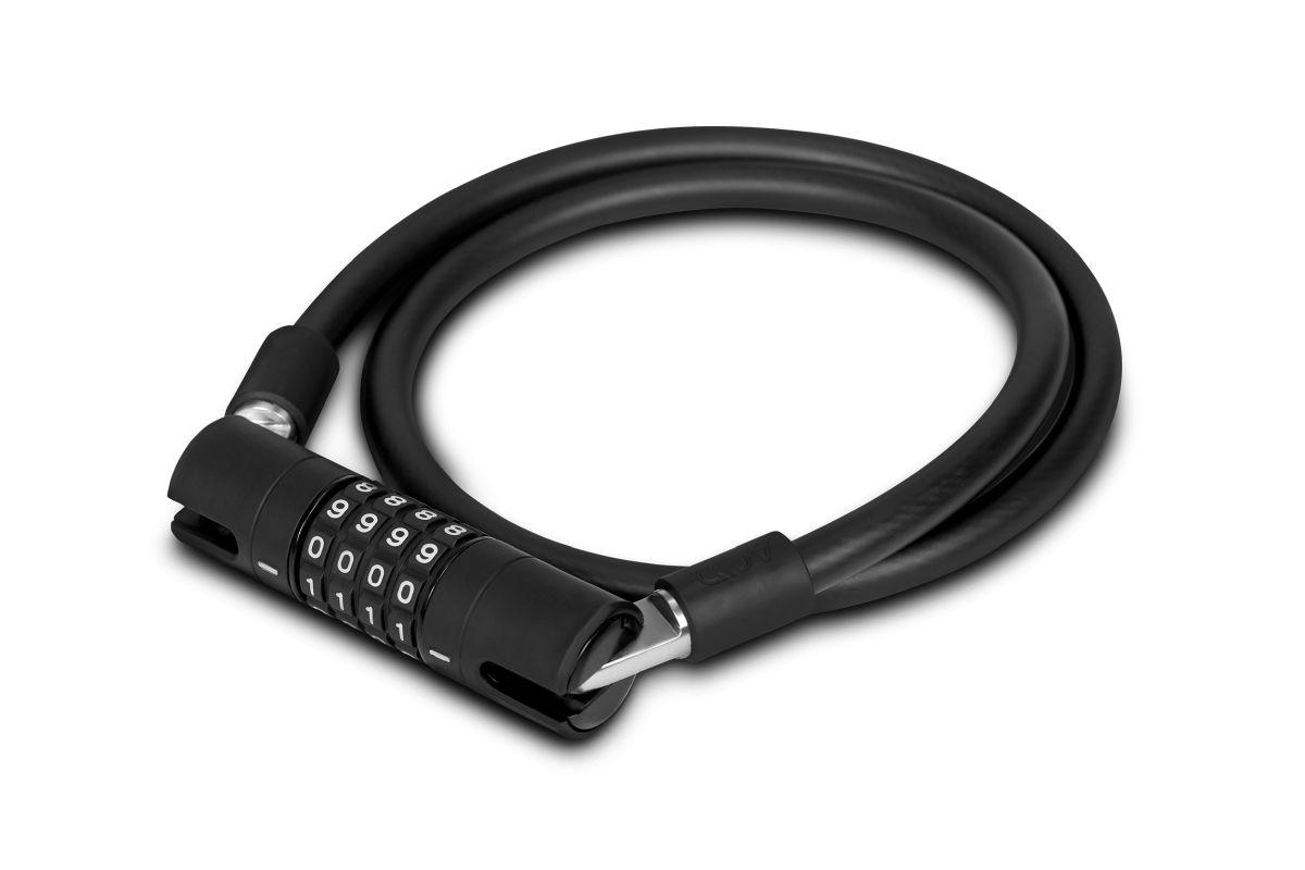 extra sicheres Kabelschloss, CORE+ verstärktes und flexibles Stahlkabel, GRIP+ vollständig gummierte Oberflächen, EASY WING 180° rotierbare Kabelanbindung, Kabel und Schlosskörper korrosionsgeschützt, Kunststoffcover schützen den Rahmen vor Kratzern, geprüft auf mechanische Festigkeit, schadstoffarm zertifiziert, frei einstellbarer Zahlencode