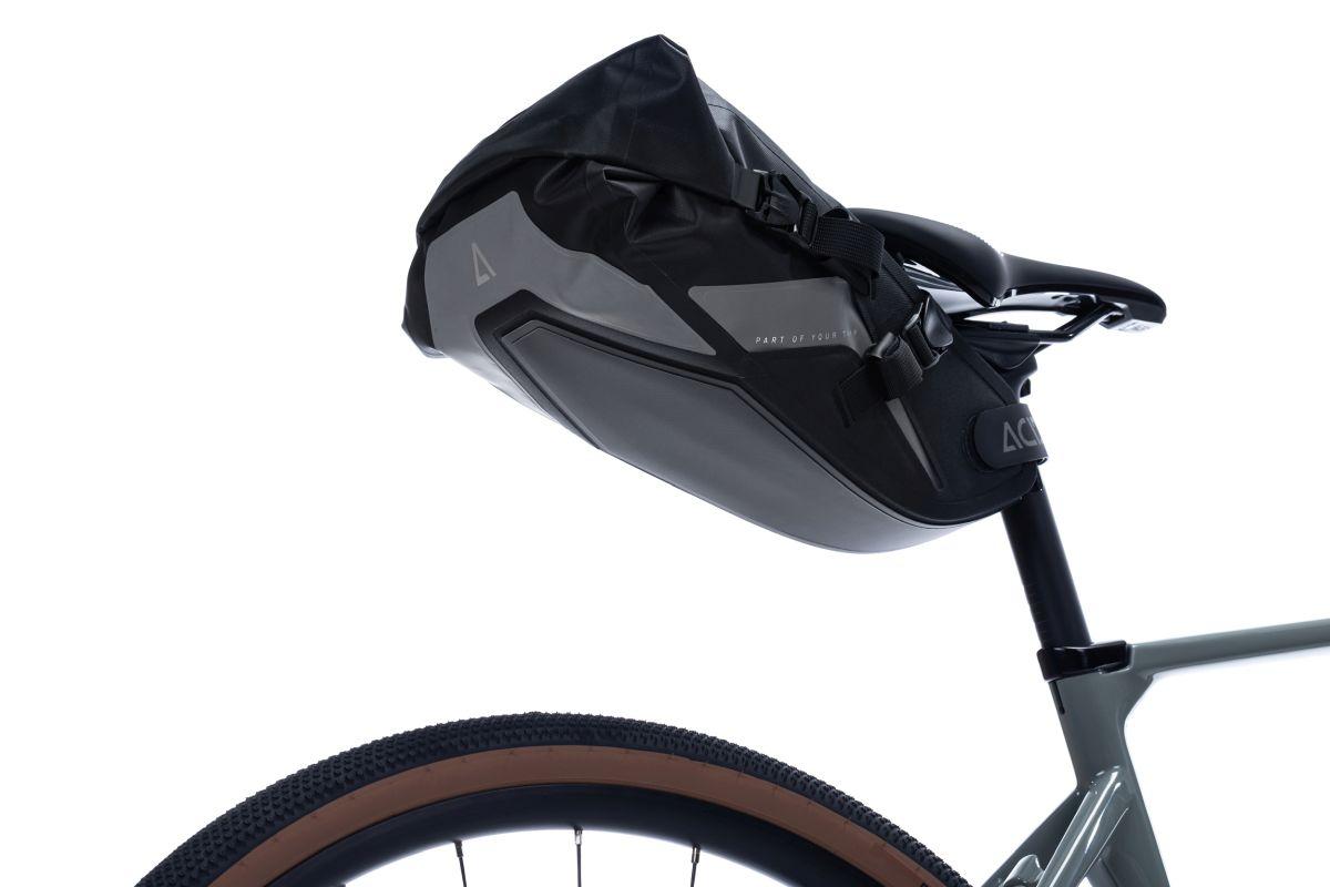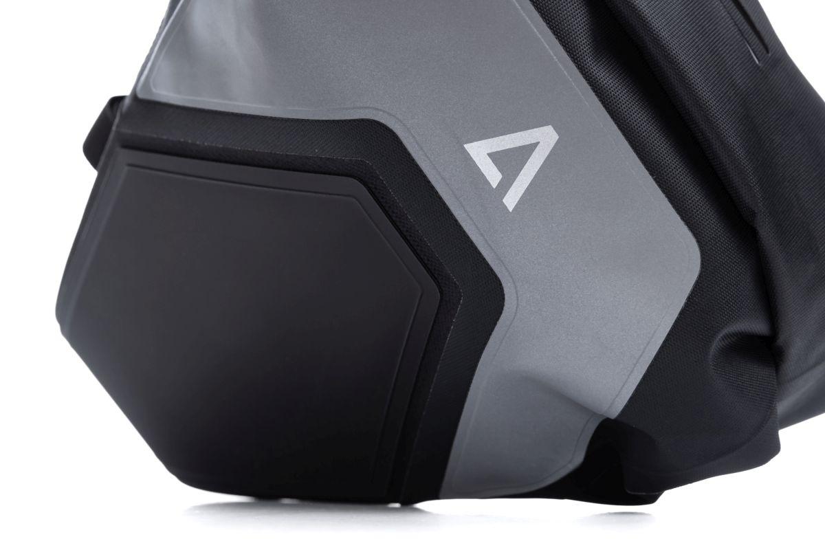 wasserdichte Tasche mit Entlüftungsventil, geprüft nach IP 64, verschweißte Konstruktion, abriebfestes Außenmaterial, textile Verstärkung in stark beanspruchten Bereichen, PVC-frei, großflächige reflektierende Elemente, MOLLE-Anbindungen, Anbringungsmöglichkeit Rücklicht, für Fahrten im Gelände geeignet, kompatibel mit dem ACID Sattelstützenadapter