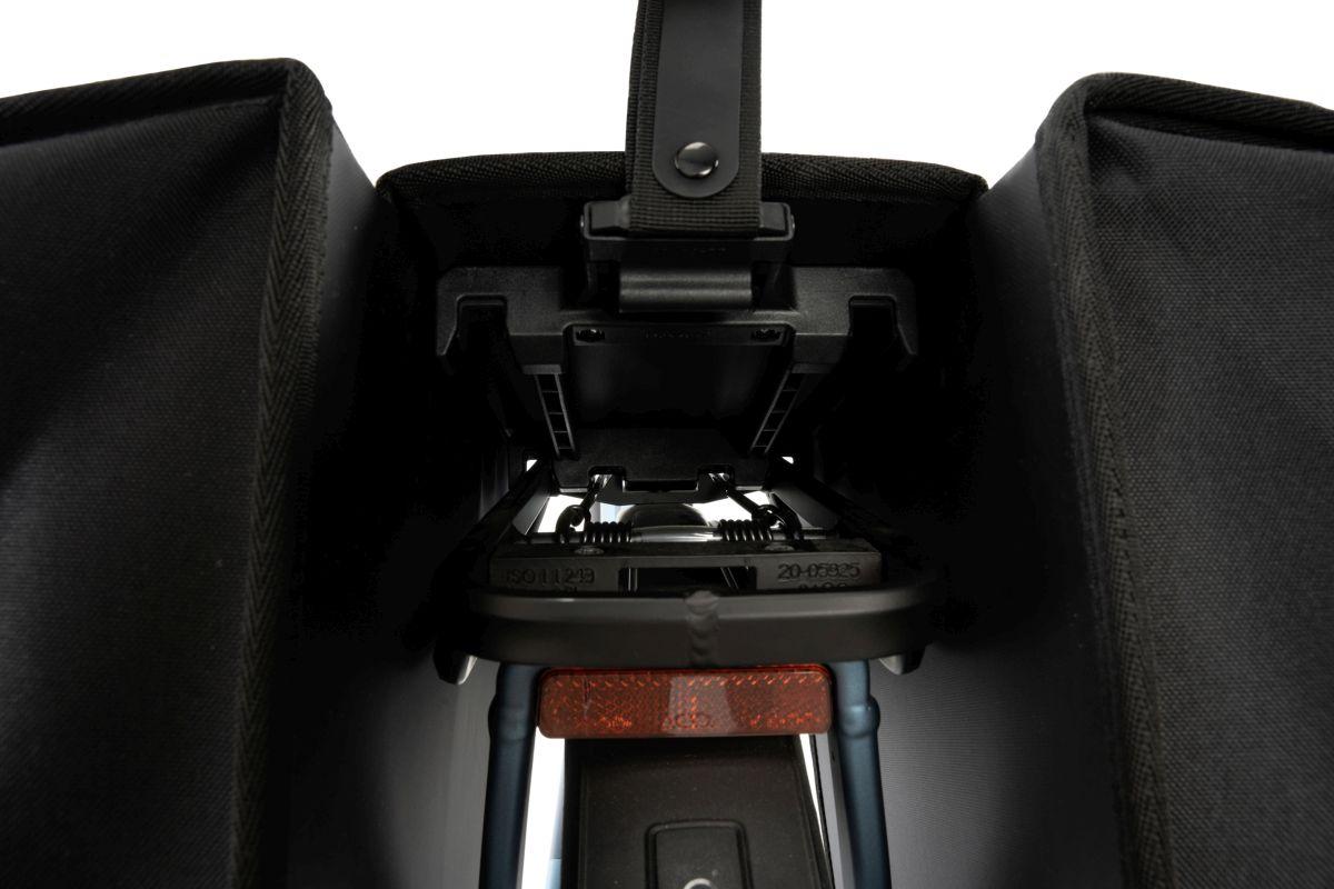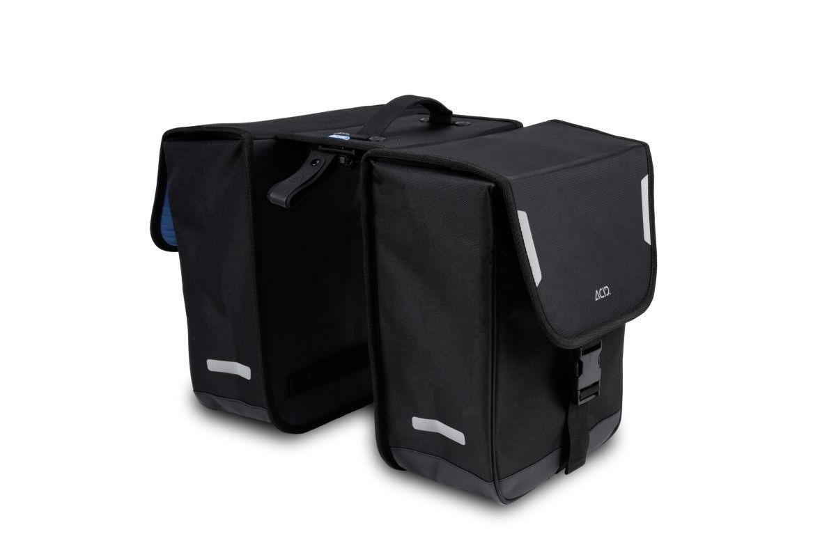abriebfestes Außenmaterial, PVC-frei, Doppelpacktasche, ACID RILink, kompatibel mit allen RILink Gepäckträgern von ACID und CUBE, Deckel mit verstellbarem Verschluss, reflektierende Elemente, Hauptfach mit Netztasche, reflektierende Regenhülle