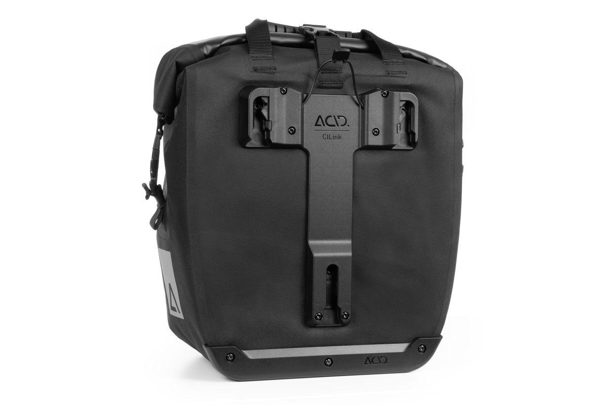 wasserdicht, abriebfestes Außenmaterial, PVC-frei, verschweißte Konstruktion, ACID Einhängesystem CILink, für alle ACID Gepäckträger mit CILink-Befestigungssystem, Schultertragegurt, reflektierende Elemente
