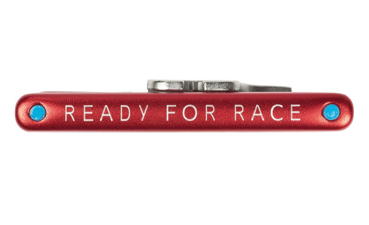 Werkzeug mit 16 Funktionen. Diese sind ein Innensechskant 2/ 3/ 4/ 5/ 6/ 8, ein Rundinnensechskant 25, ein Philips 2, ein Schlitzschraubenzieher, ein Speichenschlüssel 13/ 14/ 15/ 16G und Mavic Spline, ein Kettennieter und ein Flaschenöffner.