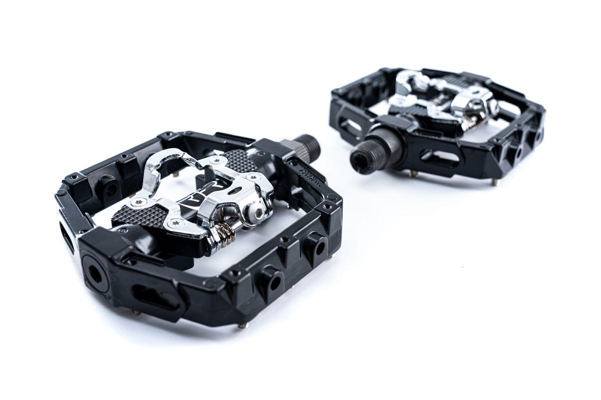 Das Flat-Pedal mit Klick System ist SPD kompatibel und wird auf einer CrMo-Achse verbaut. Die Anti-Rutsch-Pins sind austauschbar und bieten besten Halt am Fahrrad.